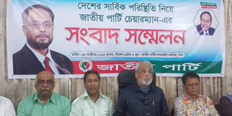 তিনি অভিযোগ করেন, জাতীয় পার্টিকে বাদ দিয়ে প্রহসনমূলকভাবে ‘অংশগ্রহণমূলক নির্বাচন’ দেখানোর চেষ্টা চলছে। তাঁর ভাষায়, “আমাদের বাদ দিয়ে প্রতীকে নির্বাচন করানোর চেষ্টা হচ্ছে, যেন দেখানো যায় জাতীয় পার্টি নির্বাচনে অংশ নিচ্ছে— অথচ বাস্তবে তা নয়। এ ধরনের কিছু করা হলে তা সুখকর হবে না।”