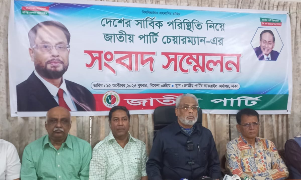 তিনি অভিযোগ করেন, জাতীয় পার্টিকে বাদ দিয়ে প্রহসনমূলকভাবে ‘অংশগ্রহণমূলক নির্বাচন’ দেখানোর চেষ্টা চলছে। তাঁর ভাষায়, “আমাদের বাদ দিয়ে প্রতীকে নির্বাচন করানোর চেষ্টা হচ্ছে, যেন দেখানো যায় জাতীয় পার্টি নির্বাচনে অংশ নিচ্ছে— অথচ বাস্তবে তা নয়। এ ধরনের কিছু করা হলে তা সুখকর হবে না।”