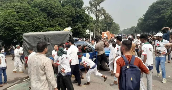 পুলিশের ধাওয়ার মুখে আন্দোলনকারীরা ইটপাটকেল নিক্ষেপ করেন। একপর্যায়ে পুলিশ লাঠিচার্জ করে পরিস্থিতি নিয়ন্ত্রণে আনে। এসময় সংসদ ভবন এলাকা জুড়ে ধাওয়া-পাল্টা ধাওয়ার ঘটনা ঘটে এবং পুরো এলাকায় ব্যাপক উত্তেজনা ছড়িয়ে পড়ে।