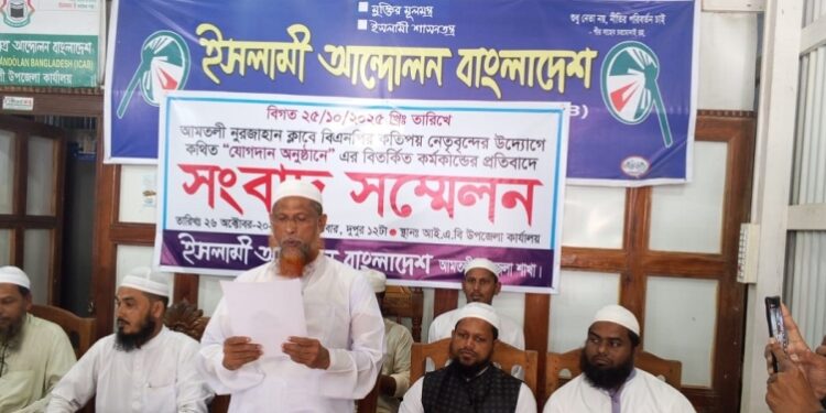 আমতলী উপজেলা ইসলামী আন্দোলনের সভাপতি মুফতি ওমর ফারুক জিহাদী দলীয় কার্যালয়ে আয়োজিত এক সংবাদ সম্মেলনে এ অভিযোগ করেন। তিনি জানান, শনিবার রাতে ইসলামী আন্দোলন বাংলাদেশ আমতলী সদর ইউনিয়নের ৮ নম্বর ওয়ার্ড শাখার বহিষ্কৃত সভাপতি মো. নাশির উদ্দিন হাওলাদারের নেতৃত্বে প্রায় তিন শতাধিক ব্যক্তি বিএনপিতে যোগদান করেন। যোগদান অনুষ্ঠানে বরগুনা জেলা বিএনপির আহ্বায়ক নজরুল ইসলাম মোল্লা এবং উপজেলা বিএনপির সাবেক সভাপতি মো. জালাল উদ্দিন ফকির উপস্থিত ছিলেন।