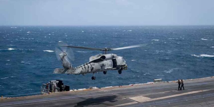 রোববার বিকেলে ঘটনার পর মার্কিন নৌবাহিনীর প্যাসিফিক ফ্লিট এক বিবৃতিতে জানায়, প্রথমে এমএইচ-৬০আর ‘সি হক’ হেলিকপ্টারটি বিধ্বস্ত হয়, পরে আধঘণ্টা না যেতেই পড়ে যায় একটি এফ/এ-১৮এফ ‘সুপার হর্নেট’ যুদ্ধবিমান। হেলিকপ্টারের তিন ক্রু সদস্য এবং যুদ্ধবিমানের দুই পাইলট ইজেক্ট করে নিরাপদে উদ্ধার হয়েছেন। তাদের সবাই এখন “সুরক্ষিত ও স্থিতিশীল অবস্থায়” রয়েছেন।
