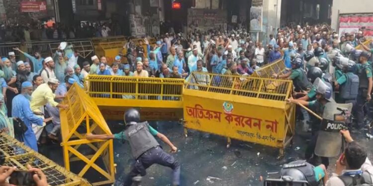রাজধানীর জাতীয় প্রেসক্লাবের সামনে চাকরি জাতীয়করণের দাবিতে আন্দোলনরত ইবতেদায়ী মাদ্রাসা শিক্ষকদের সঙ্গে পুলিশের সংঘর্ষের ঘটনা ঘটেছে। বৃহস্পতিবার (২৯ অক্টোবর) দুপুরে এ সংঘর্ষে অন্তত ১৫ জন শিক্ষক আহত হয়েছেন বলে জানা গেছে।