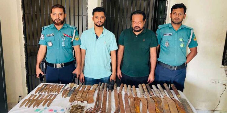 গাজীপুরের নাওজোড় এলাকায় যৌথবাহিনীর অভিযানে বিপুল পরিমাণ দেশীয় অস্ত্র ও গাঁজাসহ বাসন থানা বিএনপি সভাপতি সিরাজুল ইসলামের ভাই তসলিম সিরাজ ও তার ছেলেকে আটক করেছে আইনশৃঙ্খলা রক্ষাকারী বাহিনী। পরে তাদের বাসন থানায় হস্তান্তর করা হয়।