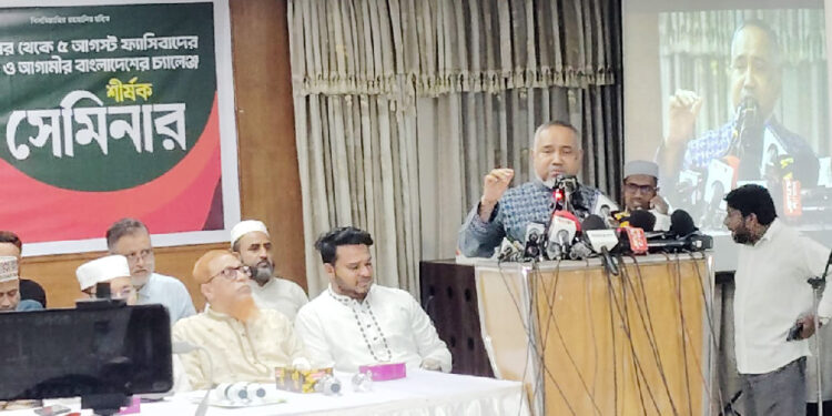 গতকাল রবিবার (২ নভেম্বর) রাজধানীর কাকরাইলে আইডিইবিতে জামায়াতে ইসলামীর ঢাকা মহানগর দক্ষিণ শাখা আয়োজিত ‘২৮ অক্টোবর থেকে ৫ আগস্ট ফ্যাসিবাদের কালো থাবা ও আগামীর বাংলাদেশের চ্যালেঞ্জ’ শীর্ষক এক সেমিনারে তিনি এসব কথা বলেন।