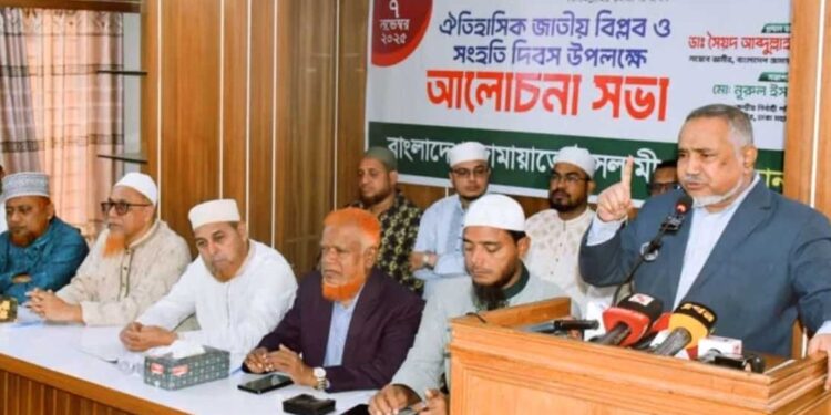 শুক্রবার (৭ নভেম্বর) রাজধানীর পল্টনে জামায়াতের ঢাকা মহানগরী দক্ষিণ কার্যালয়ে জাতীয় বিপ্লব ও সংহতি দিবস উপলক্ষে আয়োজিত আলোচনা সভায় তিনি প্রধান অতিথির বক্তব্যে বলেন, “ডাকসুতে পরাজয়ের পর তারা জাকসু, চাকুস, রাকসু নির্বাচন বন্ধে ষড়যন্ত্র করেছে। এখন জাতীয় নির্বাচনের আগে গণভোটের বিরোধিতা করছে, কারণ তারা জানে গণভোট হলে তাদের ভরাডুবি অনিবার্য।”