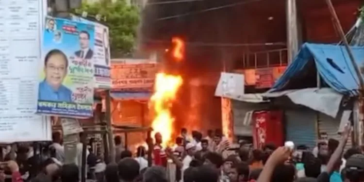 প্রত্যক্ষদর্শীরা জানান, বিকেল ৪টার দিকে দুই পক্ষের মিছিল মুখোমুখি হলে ইটপাটকেল নিক্ষেপ শুরু হয়। পরিস্থিতি দ্রুত নিয়ন্ত্রণের বাইরে চলে যায়। পরে হামলাকারীরা দেশীয় অস্ত্র নিয়ে শপিং কমপ্লেক্সে ভাঙচুর ও অগ্নিসংযোগ চালায়।