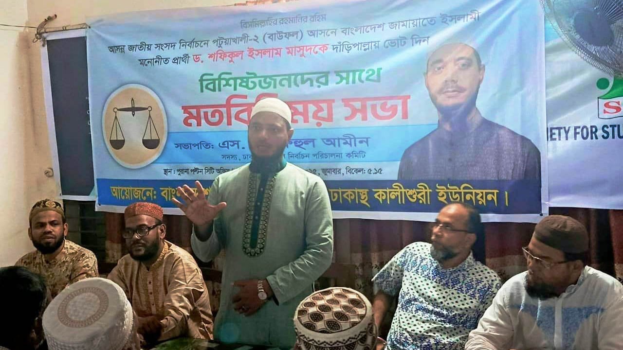 বাউফলবাসীর উদ্দেশে তিনি বলেন, “নতুন বাংলাদেশ বিনির্মাণে জামায়াতে ইসলামী ও দাঁড়িপাল্লা প্রতীকের পক্ষে দাঁড়ান।”
