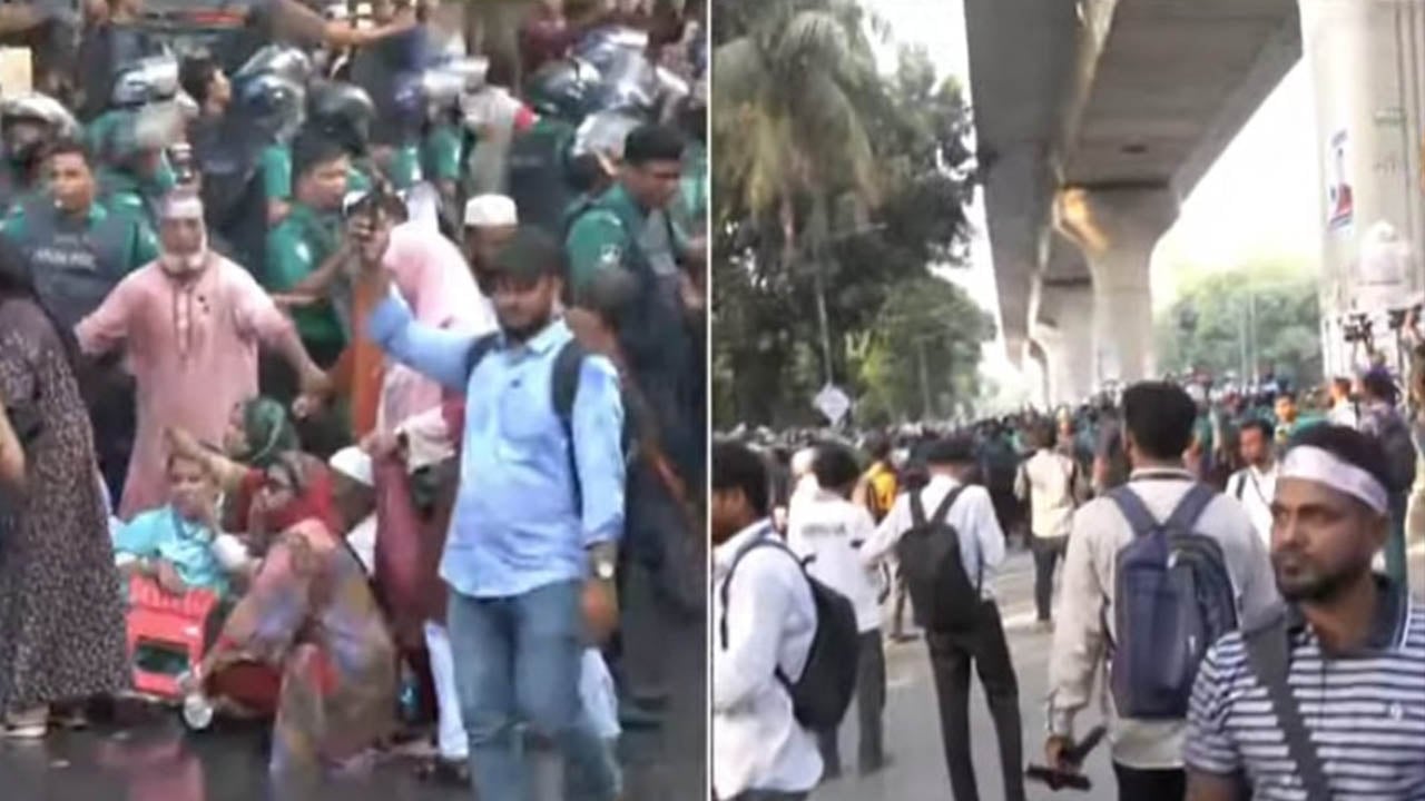 শনিবার সকালে জাতীয় প্রেস ক্লাবের সামনে থেকে প্রধান উপদেষ্টার বাসভবন অভিমুখে পদযাত্রা শুরু করতে গেলে পুলিশের সঙ্গে শিক্ষক-কর্মচারীদের ধস্তাধস্তি হয়। এসময় বিক্ষোভকারীরা সড়কে অবস্থান নিলে পুলিশ তাদের ছত্রভঙ্গ করতে সাউন্ড গ্রেনেড ছোড়ে।