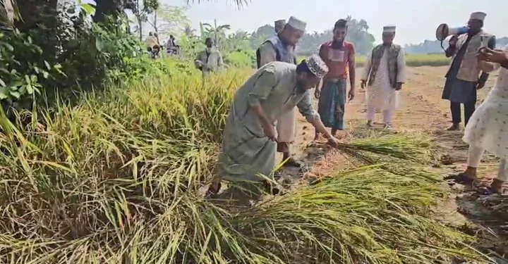 ভোট চাইতে গিয়ে কৃষকের ধান কেটে দিলেন মুফতি আমির হামজা