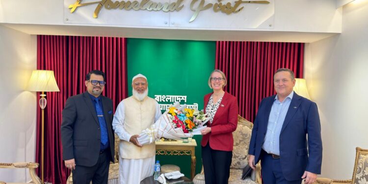 ঢাকাস্থ বিদায়ী বৃটিশ হাইকমিশনার সারাহ কুক আজ বৃহস্পতিবার সকালে বাংলাদেশ জামায়াতে ইসলামীর আমির ডা. শফিকুর রহমানের সঙ্গে তাঁর বসুন্ধরা কার্যালয়ে সৌজন্য বৈঠক করেন। বৈঠকে হাইকমিশনের হেড অব পলিটিক্যাল টিমোথি ডাকেট উপস্থিত ছিলেন।