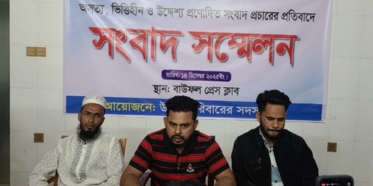 রোববার দুপুরে বাউফল প্রেসক্লাবে অনুষ্ঠিত সংবাদ সম্মেলনে লিখিত বক্তব্য পাঠ করেন ওই গৃহবধূর স্বামী আক্কাস মুন্সি। তিনি দাবি করেন, একটি পারিবারিক ঘটনাকে জামায়াতের নাম টেনে রাজনৈতিক রং দিয়ে দেশ রূপান্তর সহ কিছু গণমাধ্যমে বিভ্রান্তিকর ও অসত্য সংবাদ প্রকাশ করা হয়েছে, যা তাদের পরিবারের সম্মান ও ভাবমূর্তিকে মারাত্মকভাবে ক্ষুণ্ন করেছে।