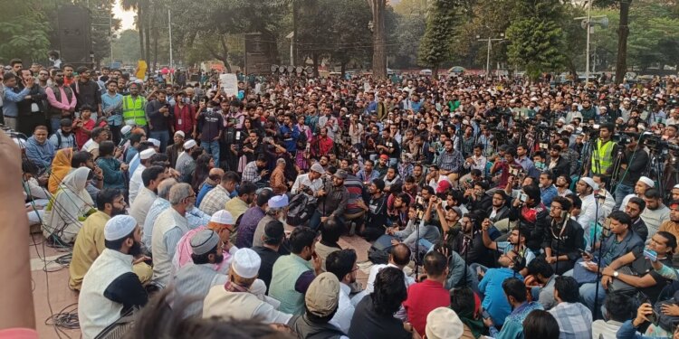 সমাবেশে সভাপতিত্ব করেন সাবেক উপদেষ্টা ও দৈনিক আমার দেশ সম্পাদক মাহমুদুর রহমান। সভায় বক্তব্য দেন সাবেক তথ্য উপদেষ্টা মাহফুজ আলম ও এনসিপির নেতা হাসনাত আব্দুল্লাহ। মাহফুজ আলম তার বক্তব্যে কঠোর ভাষা ব্যবহার করে বলেন, ভবিষ্যতে আর কোনো সহনশীলতা দেখানো হবে না। এনসিপির নেতা হাসনাত আব্দুল্লাহ ভারতের ‘সেভেন সিস্টার্স’ অঞ্চল নিয়ে দেওয়া বক্তব্যের কারণে বিতর্কে আসেন।