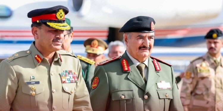 পাকিস্তান সংযুক্ত আরব আমিরাত (ইউএই) সমর্থিত লিবিয়ান ন্যাশনাল আর্মি (এলএনএ)-এর সঙ্গে ৪ বিলিয়ন ডলারের বেশি মূল্যের একটি বড় অস্ত্র বিক্রি চুক্তি চূড়ান্ত করেছে। লিবিয়ার বেনগাজি শহরে পাকিস্তানের সেনাপ্রধান জেনারেল আসিম মুনির এবং এলএনএ-এর উপপ্রধান সেনাপতি সাদ্দাম খলিফা হাফতারের মধ্যে বৈঠকের পর এই চুক্তি সম্পন্ন হয় বলে সংশ্লিষ্ট সূত্রগুলো জানিয়েছে।