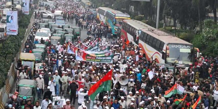 বৃহস্পতিবার (২৫ ডিসেম্বর) সকালে সরেজমিনে বিমানবন্দর ও খিলক্ষেত এলাকা ঘুরে দেখা যায়, ঢাকা–ময়মনসিংহ মহাসড়কে যান চলাচল সম্পূর্ণভাবে বন্ধ হয়ে গেছে। রাজধানীর বিভিন্ন এলাকা থেকে বিএনপি ও এর অঙ্গসংগঠনের নেতাকর্মীরা পায়ে হেঁটে মিছিল নিয়ে বিমানবন্দরের দিকে এগিয়ে যাচ্ছেন। এ সময় ‘লিডার আসছে, রাজপথ কাঁপছে’, ‘তারেক রহমান বীরের বেশে, আসছেন ফিরে বাংলাদেশে’, ‘তারেক রহমান ভয় নাই, রাজপথ ছাড়ি নাই’সহ নানা স্লোগানে মুখর হয়ে ওঠে পুরো এলাকা।