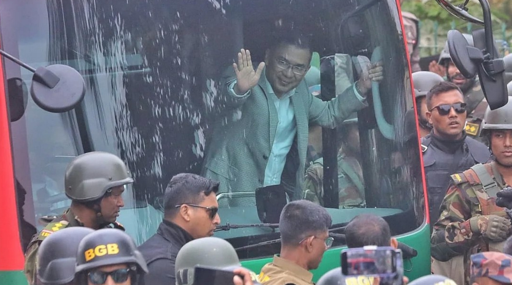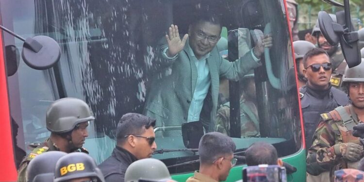 কয়েক স্তরের নিরাপত্তা বেষ্টনীতে বুলেটপ্রুফ বাসে তারেক রহমান