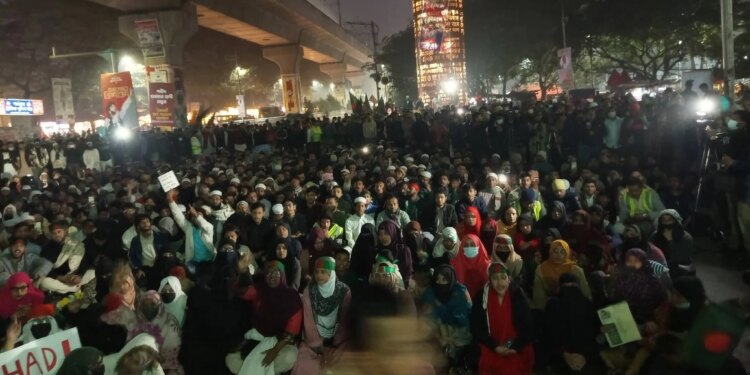 জুলাই বিপ্লবী শহীদ শরীফ ওসমান হাদি হত্যার বিচার দাবিতে অনির্দিষ্টকালের জন্য ঘোষিত অবরোধ কর্মসূচির অংশ হিসেবে রাতভর শাহবাগ মোড়ে অবস্থান করছেন বিক্ষোভকারীরা। ইনকিলাব মঞ্চ জানিয়েছে, বিচার নিশ্চিত না হওয়া পর্যন্ত তারা শাহবাগ ছাড়বে না।