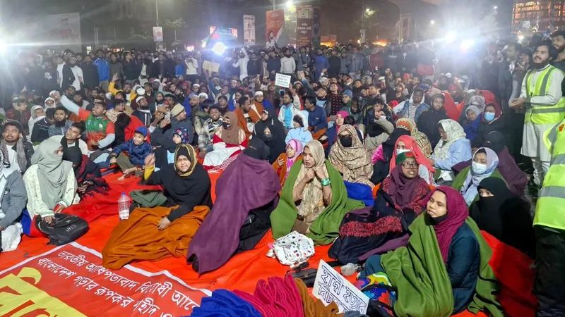 পৌষের হাড়কাঁপানো শীত ও গভীর রাতের ঘন অন্ধকার উপেক্ষা করে রাজধানীর শাহবাগ মোড়ে অবরোধ কর্মসূচি অব্যাহত রেখেছেন বিভিন্ন শ্রেণি-পেশার মানুষ। শহীদ শরীফ ওসমান হাদি হত্যার বিচার না হওয়া পর্যন্ত শাহবাগ ছাড়বেন না—এই অঙ্গীকারে নারী, শিশু ও বৃদ্ধসহ সব বয়সের মানুষ এক কাতারে অবস্থান করছেন।শুক্রবার দিবাগত রাত তিনটার দিকে সরেজমিনে দেখা যায়, কম্বল জড়িয়ে ও সামিয়ানা টানিয়ে শাহবাগ মোড়ে বসে আছেন আন্দোলনকারীরা। চারপাশ স্লোগানে মুখর— ‘শাহবাগ না ইনসাফ’, ‘উই ওয়ান্ট জাস্টিস’, ‘এক হাদির রক্ত থেকে লক্ষ হাদি জন্ম নেবে’। ট্রাফিক পুলিশ বক্সের আশপাশজুড়ে মানুষের ভিড় ও বিভিন্ন স্থানে ব্যারিকেড দেখা যায়। মূল সড়কে যান চলাচল বন্ধ থাকলেও পাশের লেনে ধীরগতিতে যান চলাচল করছে।