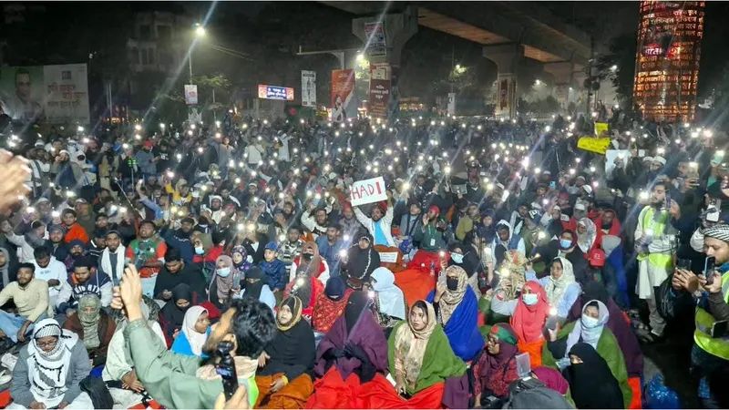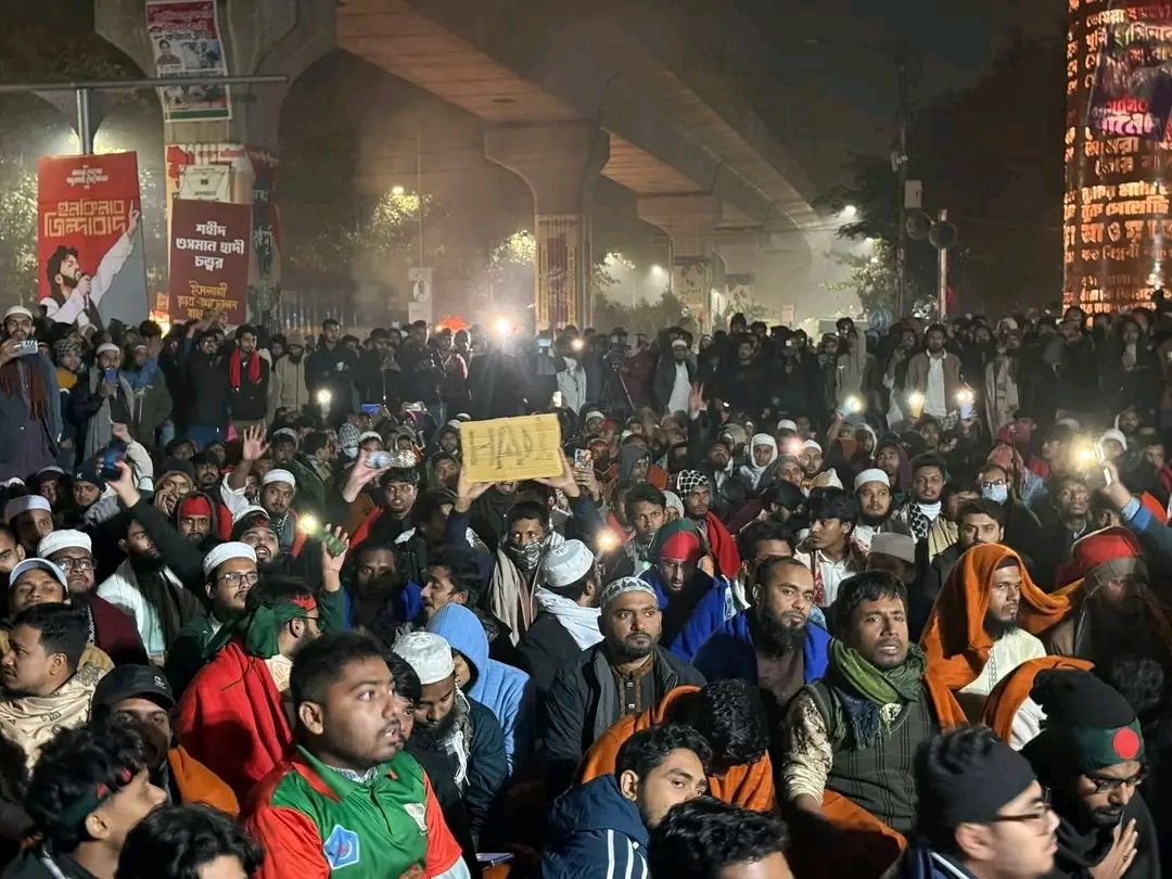 এর আগে শুক্রবার জুমার নামাজের পর ঢাকা বিশ্ববিদ্যালয় কেন্দ্রীয় জামে মসজিদ থেকে বিক্ষোভ মিছিল বের করে ইনকিলাব মঞ্চ। মিছিলটি ভিসি চত্বর, টিএসসি ও শহীদ মিনার প্রদক্ষিণ করে শাহবাগ মোড়ে এসে অবস্থান নেয়। এতে শিক্ষার্থী, রাজনৈতিক কর্মী ও সাধারণ মানুষ অংশ নেন।অবস্থান কর্মসূচিতে রাজশাহী বিশ্ববিদ্যালয় কেন্দ্রীয় ছাত্র সংসদের (রাকসু) জিএস সালাউদ্দিন আম্মার স্লোগানে নেতৃত্ব দেন। তিনি বলেন, হাদির কণ্ঠ থামিয়ে দেওয়া মানে হাজারো কণ্ঠকে জাগিয়ে তোলা। তারা বক্তব্য দিতে নয়, ইনসাফ চাইতেই শাহবাগে অবস্থান নিয়েছেন।