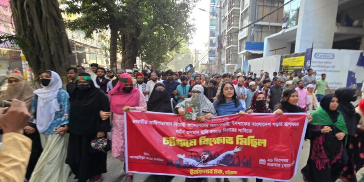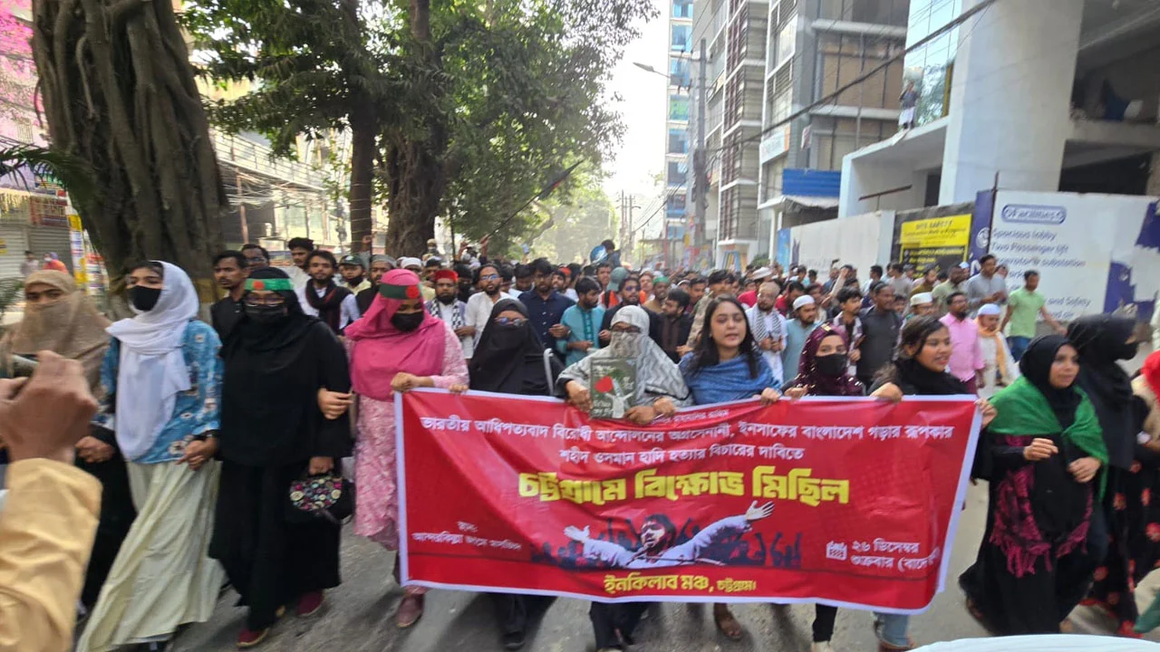 শুক্রবার জুমার নামাজের পর চট্টগ্রামের আন্দরকিল্লা শাহী জামে মসজিদের সামনের প্রাঙ্গণ থেকে ইনকিলাব মঞ্চের উদ্যোগে একটি প্রতিবাদ মিছিল বের করা হয়। মিছিলটি আন্দরকিল্লা থেকে চেরাগী পাহাড় মোড় হয়ে জামালখান এলাকার চট্টগ্রাম প্রেস ক্লাবের সামনে গিয়ে শেষ হয়।