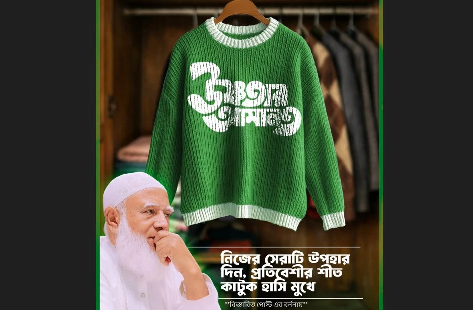 পোস্টে জামায়াত আমির বলেন, শীতের তীব্রতায় সারা দেশ কাঁপছে। আশপাশে এমন অনেক মানুষ রয়েছেন, যারা পর্যাপ্ত শীতের পোশাকের অভাবে চরম কষ্টে দিন কাটাচ্ছেন। আল্লাহ যাদের সামর্থ্য দিয়েছেন, তারা যদি সহানুভূতির হাত বাড়িয়ে দেন, তবে অসংখ্য মানুষ এই শীতটা স্বস্তিতে কাটাতে পারবেন।