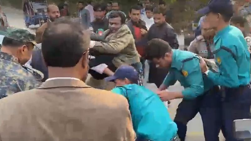 ঘটনার সময় আশপাশে থাকা পুলিশ ও আনসার সদস্যরা দ্রুত ঘটনাস্থলে পৌঁছে পরিস্থিতি নিয়ন্ত্রণে আনেন। পরে আহত ইয়াজদায়িনকে নিরাপদে সরিয়ে নেওয়া হয়।