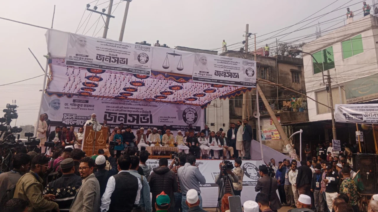 জামায়াতে ইসলামীর ঢাকা মহানগর নায়েবে আমির আব্দুস সবুর ফকিরের সভাপতিত্বে অনুষ্ঠিত সমাবেশে আরও বক্তব্য দেন ১১ দলীয় জোট মনোনীত ঢাকা-৫ আসনের এমপি প্রার্থী মোহাম্মদ কামাল হোসেন, ঢাকা-৪ আসনের এমপি প্রার্থী সৈয়দ জয়নুল আবেদীন, অধ্যক্ষ মাওলানা জাকির হোসেন, মাওলানা আব্দুর রহমানসহ অন্যান্য নেতারা।