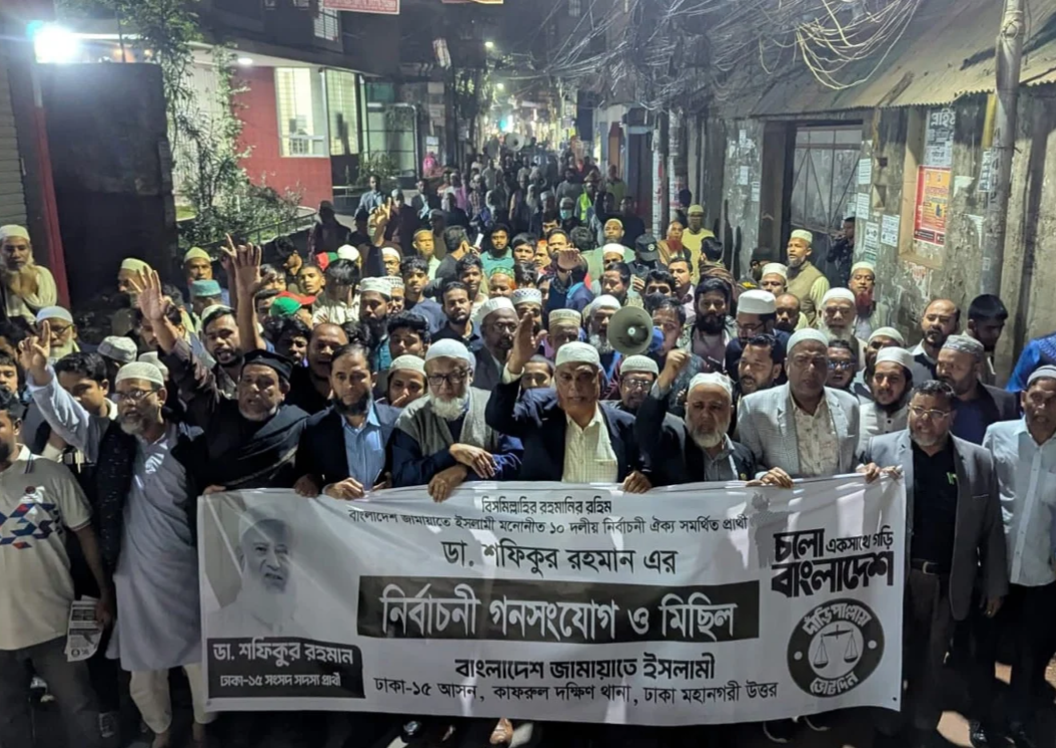 ঢাকা-১৫ আসনের বিভিন্ন এলাকায় জামায়াতের মিছিল ও গনসংযোগ
