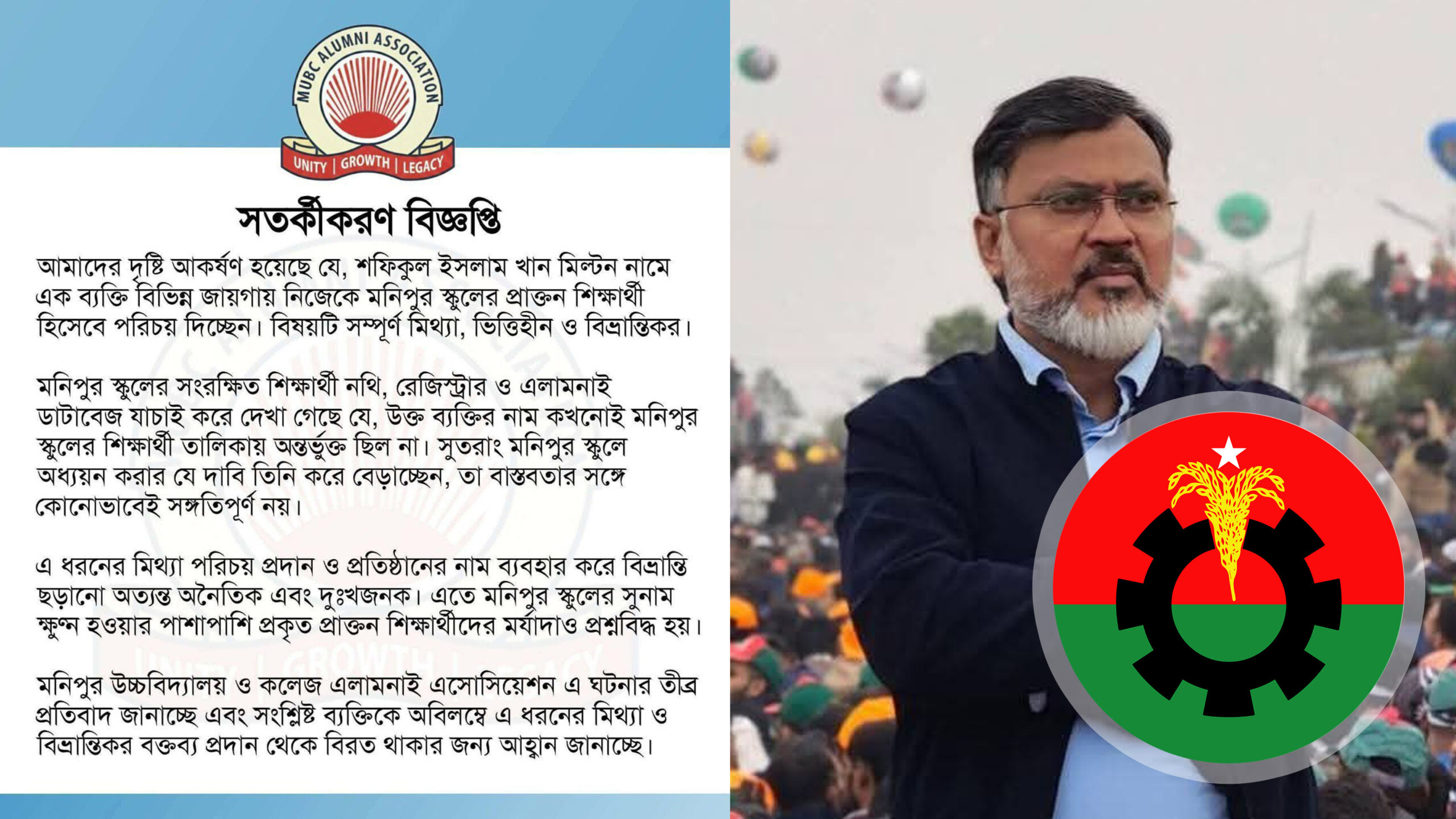 ঢাকা-১৫ আসনে মিল্টনের ‘ভুয়া’ পরিচয়: মনিপুর স্কুল এলামনাই এসোসিয়েশনের তীব্র প্রতিবাদ