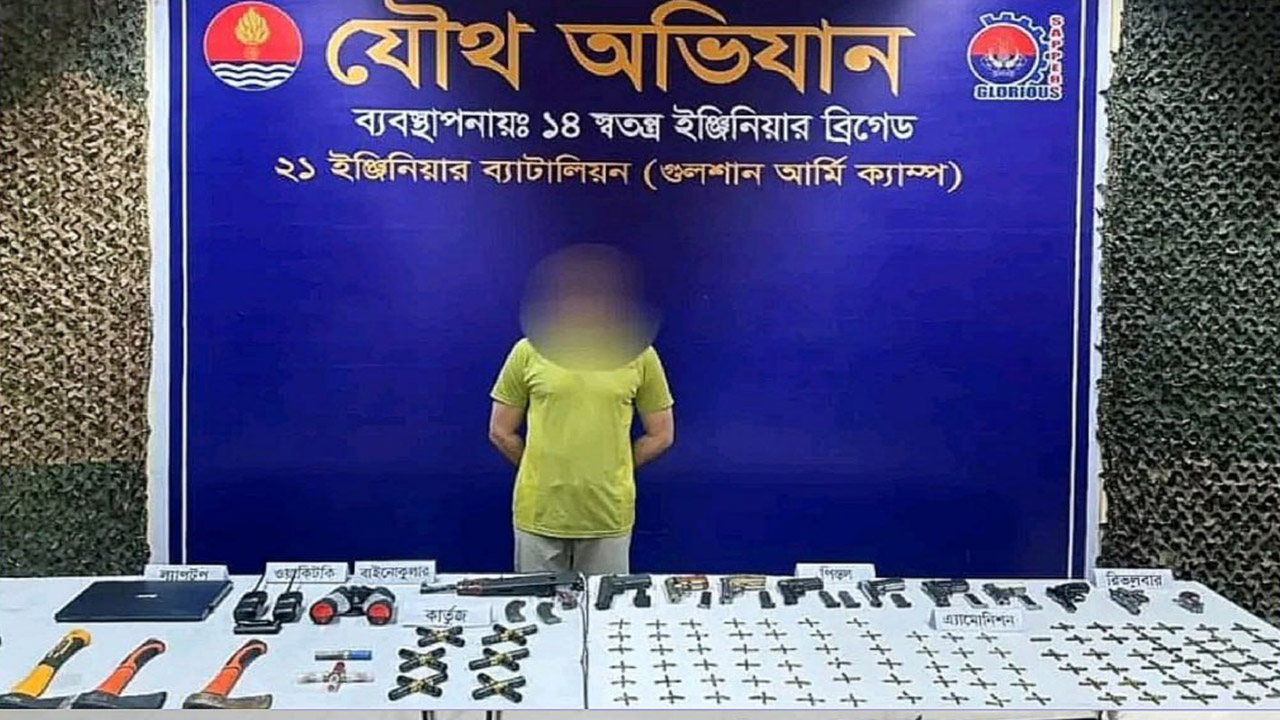 সেনাবাহিনী জানিয়েছে, অভিযানে ১টি ০.২২ বোর রাইফেল, ৭টি বিদেশি পিস্তল, ৩টি রিভলবার এবং ৮টি বিদেশি পিস্তলসহ মোট ২১টি আগ্নেয়াস্ত্র উদ্ধার করা হয়েছে। এ সময় ৩৯৪ রাউন্ড তাজা গুলি, ৩০ রাউন্ড কার্তুজ, ২টি রাইফেলের ম্যাগাজিন এবং ৩টি চাইনিজ কুড়ালসহ বেশ কিছু দেশীয় অস্ত্র জব্দ করা হয়। অস্ত্র ও গোলাবারুদ অবৈধভাবে মজুত রাখার অভিযোগে মেহেদী হাসান বিপুসহ মোট চারজনকে আটক করা হয়েছে বলে নিশ্চিত করেছেন গুলশান সেনা ক্যাম্পের প্রধান লেফটেন্যান্ট কর্নেল মো. জিষান ইসতিয়াক খান।