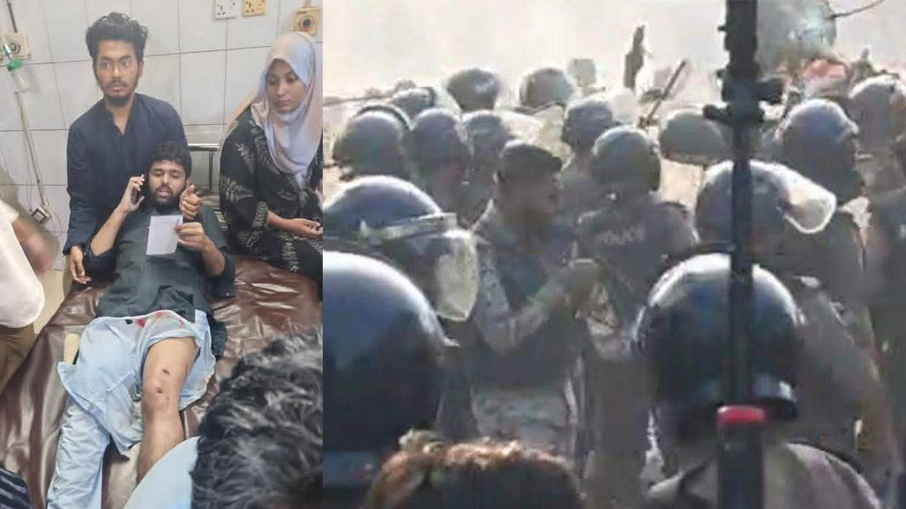 রাজধানীর শাহবাগে ইন্টারকন্টিনেন্টাল হোটেলের সামনে ইনকিলাব মঞ্চের নেতাকর্মীদের ওপর পুলিশের ব্যাপক লাঠিচার্জ, জলকামান ও ছররা গুলি বর্ষণের ঘটনায় এলাকাটি রণক্ষেত্রে পরিণত হয়েছে। আজ শুক্রবার (৬ ফেব্রুয়ারি ২০২৬) বিকেল ৪টার দিকে এই রক্তক্ষয়ী সংঘর্ষের ঘটনা ঘটে। ইনকিলাব মঞ্চের মুখপাত্র শহীদ শরীফ ওসমান হাদি হত্যার বিচারের দাবিতে যমুনা অভিমুখে যাত্রা শুরু করলে পুলিশি বাধার মুখে পড়ে আন্দোলনকারীরা। এতে সংগঠনের সদস্য সচিব আবদুল্লাহ আল জাবের, ডাকসুর সাবেক নেত্রী ফাতেমা তাসনিম জুমা, জকসুর নেত্রী শান্তা আক্তার এবং রাকসুর জিএস সালাউদ্দিন আম্মারসহ অন্তত ৩০ জন গুরুতর আহত হয়েছেন।