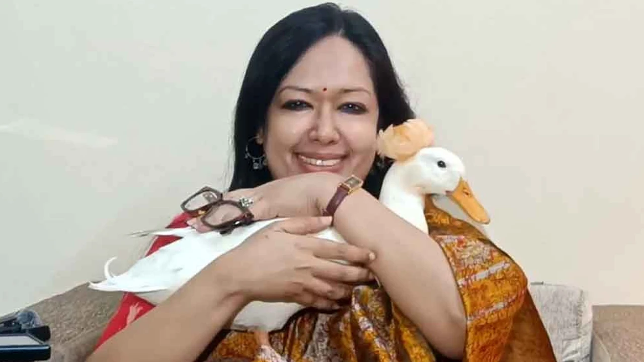 হাঁস কোলে নিয়ে সংবাদ সম্মেলনে রুমিন ফারহানা
