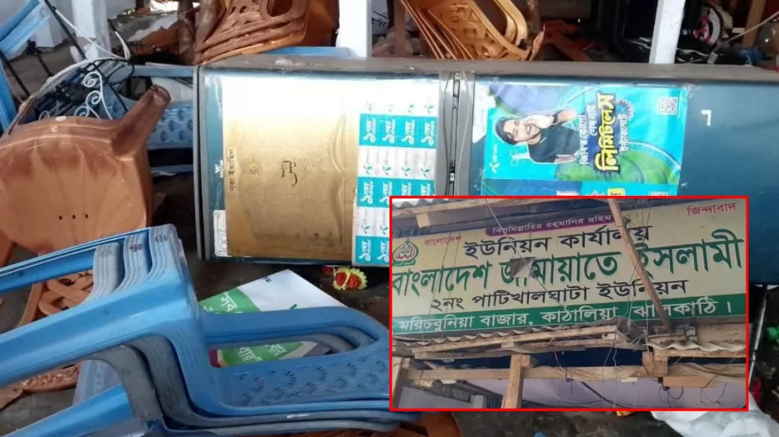 ঝালকাঠির কাঁঠালিয়ায় জামায়াত ইসলামীর কর্মী-সমর্থকদের বাড়িঘর, ব্যবসাপ্রতিষ্ঠান এবং ইউনিয়ন অফিসে হামলা ও ভাঙচুরের ঘটনা ঘটেছে। শুক্রবার (১৩ ফেব্রুয়ারি) রাতে উপজেলার পাটিখালঘাটা ইউনিয়নে দুর্বৃত্তদের এই তাণ্ডবে দুই নারী আহত হয়েছেন। এ ঘটনায় জড়িত থাকার অভিযোগে পুলিশ বিএনপির দুই কর্মীকে গ্রেপ্তার করেছে।