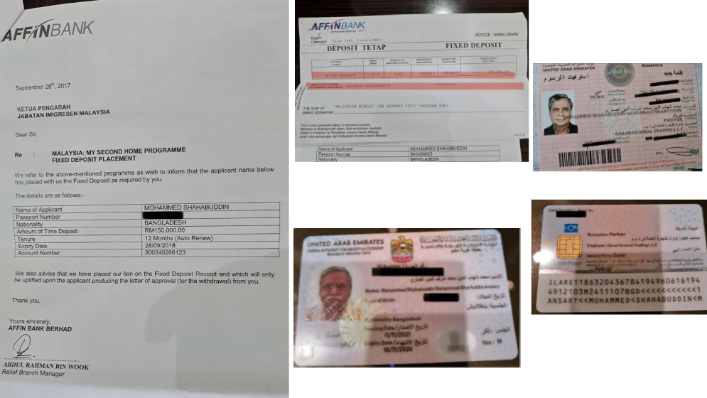 দাবি করা হচ্ছে, রাষ্ট্রপতি মো. সাহাবুদ্দিন মালয়েশিয়া সেকেন্ড হোম প্রকল্পে দেড় লাখ রিংগিত বিনিয়োগ করেছেন। এর পাশাপাশি দুবাইয়ে ‘ওয়ারাদ জেনারেল ট্রেডিং এলএলসি’ নামক একটি নিবন্ধিত প্রতিষ্ঠানে বিনিয়োগের বিনিময়ে তিনি সংযুক্ত আরব আমিরাতের রেসিডেন্সি ভিসা লাভ করেছেন বলেও অভিযোগ রয়েছে। এমনকি দুবাইয়ের কয়েকটি ব্যাংক অ্যাকাউন্টের তথ্যও বিভিন্ন মাধ্যমে আলোচনায় এসেছে।