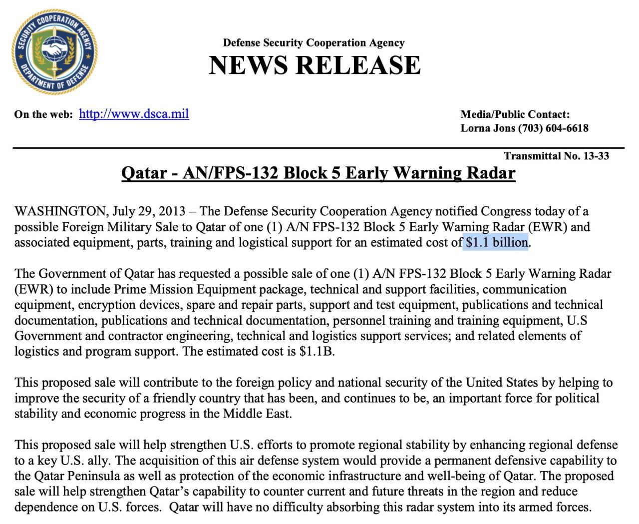 ক্ষতিগ্রস্ত রাডারটি যুক্তরাষ্ট্রের তৈরি অত্যাধুনিক ‘এএন/এফপিএস-১৩২ ব্লক ৫’ (AN/FPS-132 Block 5) আর্লি ওয়ার্নিং রাডার। এটি মূলত শত্রুপক্ষের ক্ষেপণাস্ত্রের গতিবিধি অনেক দূর থেকেই শনাক্ত করতে সক্ষম। ২০১৩ সালে কাতারে স্থাপিত এই রাডারটির তৎকালীন নির্মাণ ও স্থাপন ব্যয় ছিল প্রায় ১.১ বিলিয়ন ডলার।