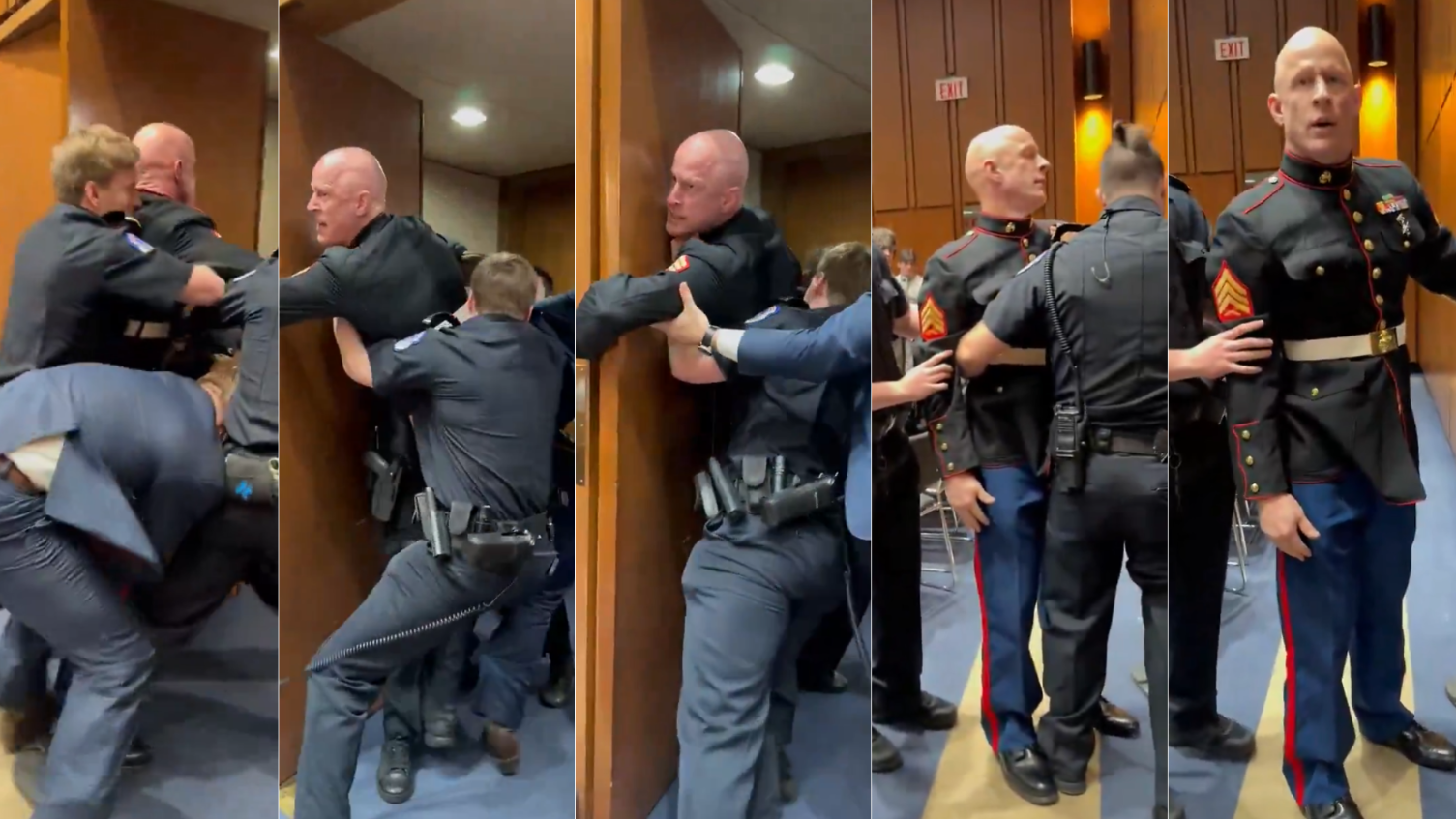 শুনানি চলাকালে ব্রায়ান ম্যাকগিনিস দাঁড়িয়ে উচ্চস্বরে ট্রাম্প প্রশাসনের যুদ্ধমুখী নীতির তীব্র প্রতিবাদ জানান। নিরাপত্তা কর্মকর্তারা তাকে পাহারা দিয়ে কক্ষ থেকে বের করে আনার সময় তিনি চিৎকার করে বলতে থাকেন, “কেউ ইসরায়েলের হয়ে লড়াই করতে চায় না।” তার এই বক্তব্য উপস্থিত কর্মকর্তাদের মধ্যে চাঞ্চল্যের সৃষ্টি করে।