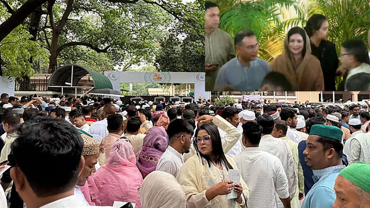 দীর্ঘ ১৯ বছরের নির্বাসন শেষে দেশে ফেরার পর প্রধানমন্ত্রী হিসেবে প্রথম ঈদুল ফিতর উদযাপন করলেন তারেক রহমান। শনিবার (২১ মার্চ) সকাল সাড়ে ৮টায় হাইকোর্ট সংলগ্ন জাতীয় ঈদগাহ ময়দানে রাষ্ট্রপতি মো. সাহাবুদ্দিনের সঙ্গে ঈদের প্রধান জামাতে অংশ নেন তিনি। নামাজ শেষে উপস্থিত মুসল্লিদের সঙ্গে কুশল বিনিময় করে সকাল ১০টায় রাষ্ট্রীয় অতিথি ভবন যমুনায় সর্বস্তরের মানুষের সঙ্গে শুভেচ্ছা বিনিময় অনুষ্ঠানে যোগ দেন প্রধানমন্ত্রী।