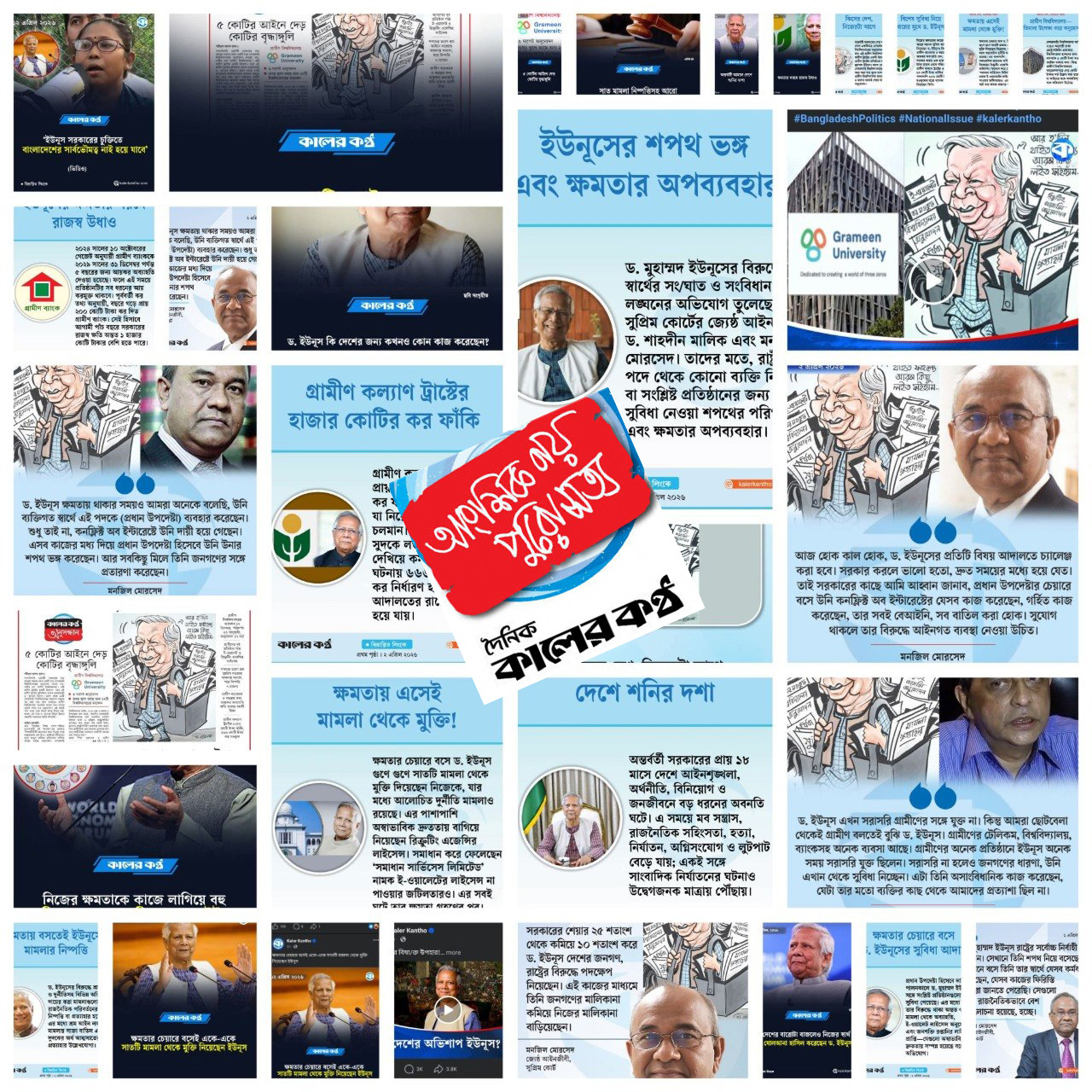অন্যদিকে, কালের কণ্ঠের বর্তমান সম্পাদক হাসান হাফিজ একজন চিহ্নিত বিএনপিপন্থী সাংবাদিক হিসেবে পরিচিত। সম্প্রতি তারেক রহমানের হাত থেকে তিনি বাংলা একাডেমি সাহিত্য পুরস্কার গ্রহণ করেছেন। এই মিডিয়া কাঠামোর শীর্ষ পর্যায়ের ব্যক্তিদের রাজনৈতিক সংশ্লিষ্টতা এবং সরকারের বিভিন্ন সংস্কারমূলক পদক্ষেপের বিরোধিতাই ড. ইউনূসকে কেন্দ্র করে চলমান বিতর্কের মূল কারণ হিসেবে দেখা হচ্ছে।