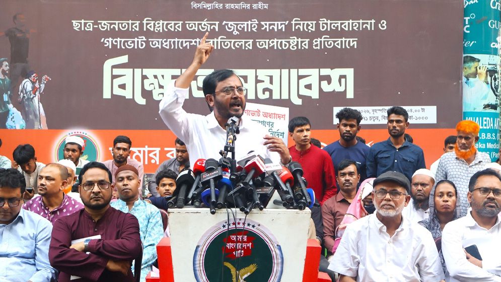 জুলাই সনদ বাস্তবায়ন এবং গণভোট অধ্যাদেশ নিয়ে বিএনপির কথা ও কাজের মিল নেই বলে অভিযোগ তুলেছে আমার বাংলাদেশ (এবি) পার্টি। বৃহস্পতিবার (২ এপ্রিল) রাজধানীর পল্টনে আয়োজিত এক বিক্ষোভ সমাবেশে দলটির চেয়ারম্যান মজিবুর রহমান মঞ্জু এই দাবি করেন। ছাত্র-জনতার বিপ্লবের অর্জন রক্ষায় টালবাহানা ও আইনি বিতর্ক তৈরির প্রতিবাদে এই সমাবেশের আয়োজন করা হয়।