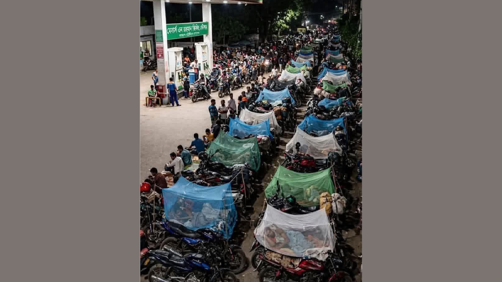 তেলপাম্পে মশারি নিয়ে রাতযাপনের ছবিটি নিয়ে যা জানা গেল