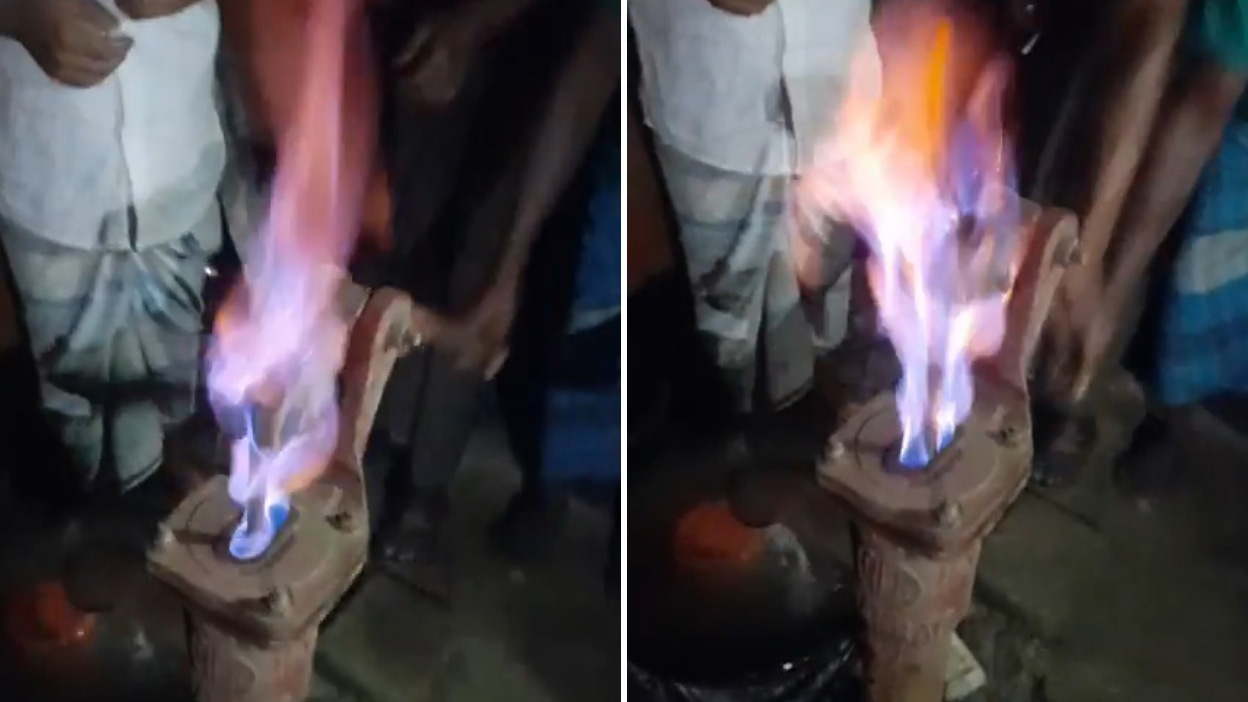 নোয়াখালীর চাটখিল উপজেলার রামনারায়ণপুর ইউনিয়নের বৈকুণ্ঠপুর গ্রামে একটি বসতবাড়ির নলকূপ দিয়ে পানির সঙ্গে গ্যাস বের হওয়ার ঘটনা ঘটেছে। গত শুক্রবার সুরের বাড়ির আব্দুল মতিন তার নতুন বসানো নলকূপের মুখে দিয়াশলাই ধরতেই দাউ দাউ করে আগুন জ্বলে ওঠে। এই চাঞ্চল্যকর খবর ছড়িয়ে পড়লে স্থানীয়দের মধ্যে একই সঙ্গে চরম কৌতূহল ও আতঙ্কের সৃষ্টি হয়েছে।