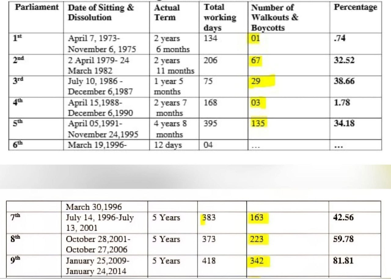 সংসদ বর্জনের ইতিহাসে বিএনপির রেকর্ড ভাঙা বর্তমানে প্রায় অসম্ভব বলে মনে করা হচ্ছে। তথ্য অনুযায়ী, ১৯৯৬ থেকে ২০০১ সাল পর্যন্ত সংসদে ৩৮৩ কার্যদিবসের মধ্যে ১৬৩ দিন (৪৩%) অনুপস্থিত ছিল দলটি। ২০০৯ থেকে ২০১৪ সাল পর্যন্ত এই হার আরও বেড়ে দাঁড়ায়, যেখানে ৪১৮ কার্যদিবসের মধ্যে ৩৪২ দিনই (৮২%) তারা সংসদ বর্জন বা ওয়াকআউট করেছিল।