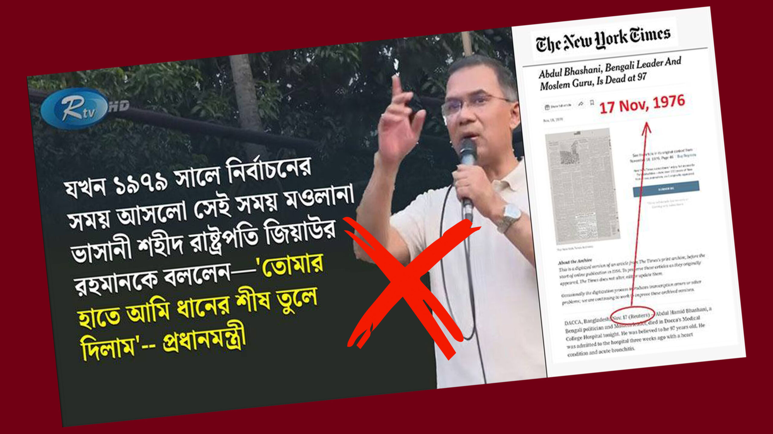 তবে ঐতিহাসিক তথ্যের নিরিখে প্রধানমন্ত্রীর এই দাবিটির সত্যতা নিয়ে বড় ধরনের প্রশ্ন উঠেছে। মওলানা আব্দুল হামিদ খান ভাসানী ১৯৭৬ সালের ১৭ নভেম্বর ইন্তেকাল করেন। অর্থাৎ, ১৯৭৯ সালে কোনো জনসভায় বা ব্যক্তিগতভাবে তাঁর পক্ষে জিয়াউর রহমানের হাতে প্রতীক তুলে দেওয়া বাস্তবসম্মত নয়, কারণ তাঁর মৃত্যুর প্রায় তিন বছর পর ওই সময়কালটি নির্দেশ করা হয়েছে।