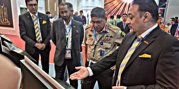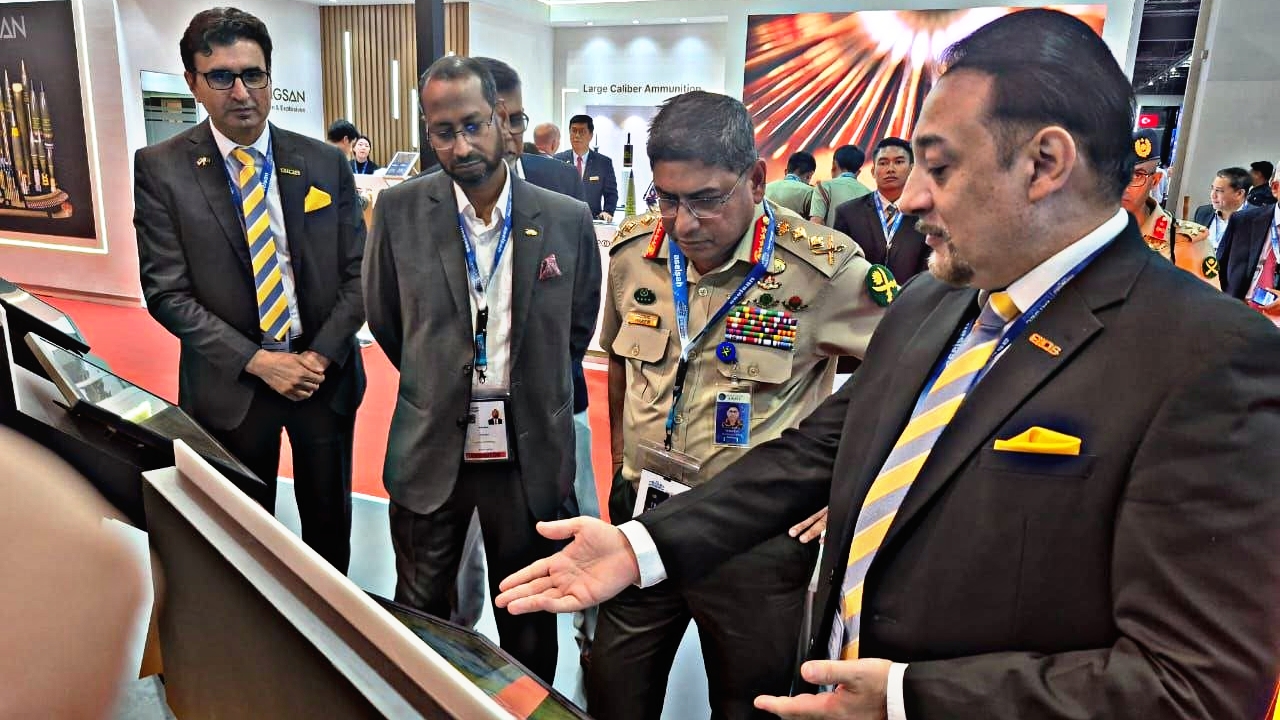 প্রদর্শনীর বিভিন্ন স্টল পরিদর্শনকালে তিনি পাকিস্তানের অস্ত্র নির্মাতা প্রতিষ্ঠান গ্লোবাল ইন্ডাস্ট্রিয়াল অ্যান্ড ডিফেন্স সলিউশনস (জিআইডিএস)-এর প্যাভিলিয়নে যান। সেখানে প্রতিষ্ঠানটির প্রধান নির্বাহী কর্মকর্তা আসাদ কামাল তাকে তাদের তৈরি আধুনিক লেজার গাইডেড বোমা ও ‘ফাতাহ’ স্ট্যান্ড-অফ গাইডেড মিসাইল সম্পর্কে ব্রিফ করেন।