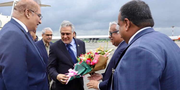 বিমানবন্দরে পররাষ্ট্রমন্ত্রী ইসহাক দারকে স্বাগত জানান পররাষ্ট্র মন্ত্রণালয়ের সচিব নজরুল ইসলাম। সন্ধ্যায় পাকিস্তান হাইকমিশন আয়োজিত সংবর্ধনায় যোগ দেবেন দেশটির পররাষ্ট্রমন্ত্রী। সেখানে শিক্ষক, সাংবাদিকসহ পেশাজীবীরা অংশ নেবেন।