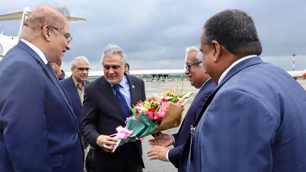 বিমানবন্দরে পররাষ্ট্রমন্ত্রী ইসহাক দারকে স্বাগত জানান পররাষ্ট্র মন্ত্রণালয়ের সচিব নজরুল ইসলাম। সন্ধ্যায় পাকিস্তান হাইকমিশন আয়োজিত সংবর্ধনায় যোগ দেবেন দেশটির পররাষ্ট্রমন্ত্রী। সেখানে শিক্ষক, সাংবাদিকসহ পেশাজীবীরা অংশ নেবেন।