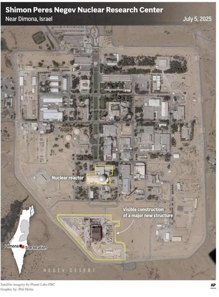 ইসরায়েলের গোপন শিমন পেরেস নেগেভ নিউক্লিয়ার রিসার্চ সেন্টার, যা সাধারণভাবে ডিমোনা পারমাণবিক কেন্দ্র নামে পরিচিত, সেখানে নতুন স্থাপনা নির্মাণকাজের প্রমাণ মিলেছে। সাম্প্রতিক স্যাটেলাইট চিত্রে দেখা গেছে, কেন্দ্রটিতে ব্যাপক খননকাজ ও অবকাঠামো উন্নয়ন চলছে।
