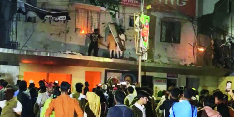 এর আগে এদিন সন্ধ্যা ৭টার পরপর বিক্ষোভকারীদের একটি দল জাতীয় পার্টির কেন্দ্রীয় কার্যালয়ে ব্যাপক ভাঙচুর চালায়। ভাঙচুর শেষে অগ্নিসংযোগ করা হয়। পরে সাড়ে ৭টার দিকে আইনশৃঙ্খলা রক্ষাকারী বাহিনীর সদস্যরা আন্দোলনকারীদের ছত্রভঙ্গ করতে টিয়ার গ্যাস ও সাউন্ড গ্রেনেড নিক্ষেপ করে। পরে বিক্ষোভকারীদের সঙ্গে আইন-শৃঙ্খলা বাহিনীর ধাওয়া-পাল্টা ধাওয়ার ঘটনা ঘটে।