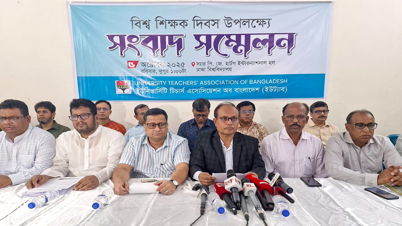 বিশ্ব শিক্ষক দিবস উপলক্ষে দেশের শিক্ষক সমাজের পেশাগত মর্যাদা, আর্থিক সুরক্ষা এবং গবেষণার উপযোগী পরিবেশ নিশ্চিত করতে ১২ দফা দাবি উত্থাপন করেছে ইউনিভার্সিটি টিচার্স অ্যাসোসিয়েশন অব বাংলাদেশ (ইউট্যাব)।