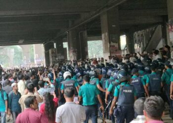 আরও পড়ুনDetailsরাজধানীর শাহবাগ এলাকায় ঢাকা বিশ্ববিদ্যালয়ের স্যার এ.এফ. রহমান হল এক্সটেনশন শাহনেওয়াজ ছাত্রাবাসের সামনে ঢাকা কলেজের শিক্ষার্থীদের সঙ্গে সংঘর্ষে জড়িয়েছে ঢাবির...