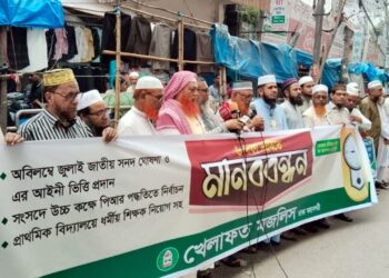 আরও পড়ুনDetailsজুলাই সনদকে আইনি ও সাংবিধানিক স্বীকৃতি দিতে স্বাক্ষরের দেড় মাসের মধ্যেই গণভোট আয়োজনের দাবি জানিয়েছেন খেলাফত মজলিসের মহাসচিব ড. আহমদ...